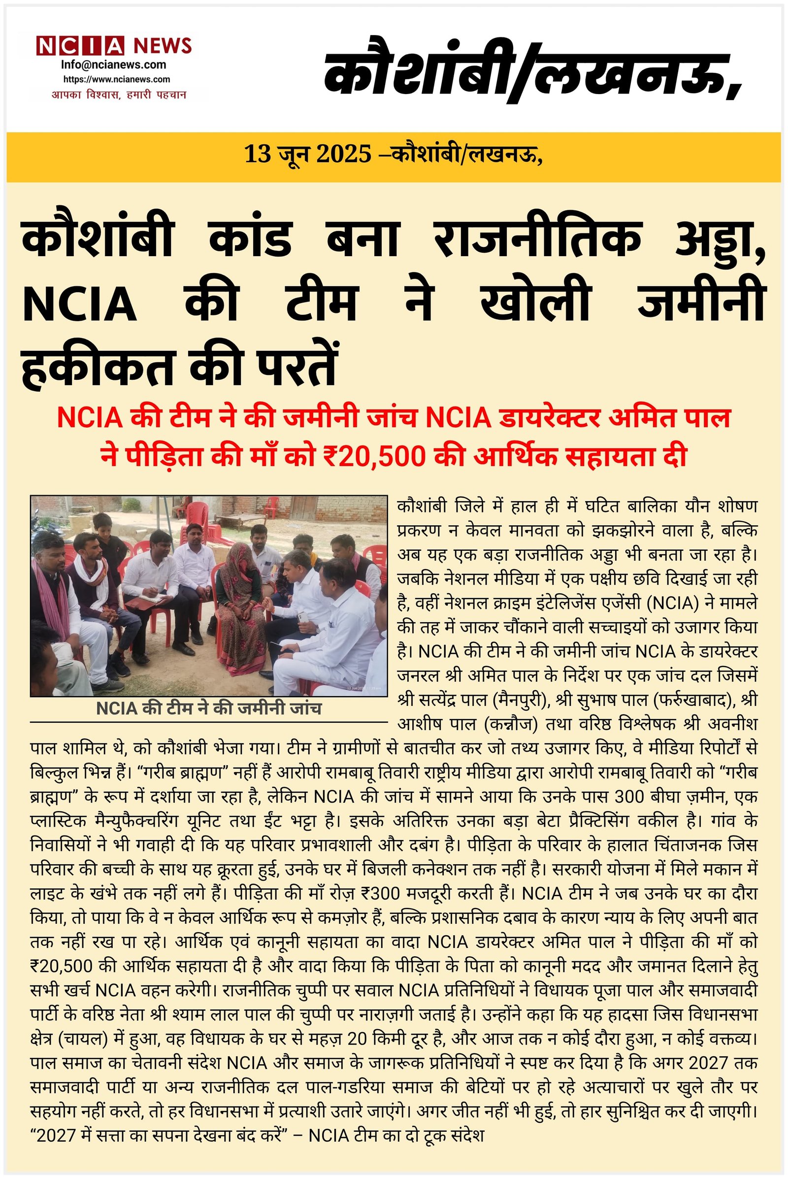 कौशांबी कांड बना राजनीतिक अड्डा, NCIA की टीम ने खोली जमीनी हकीकत की परतें